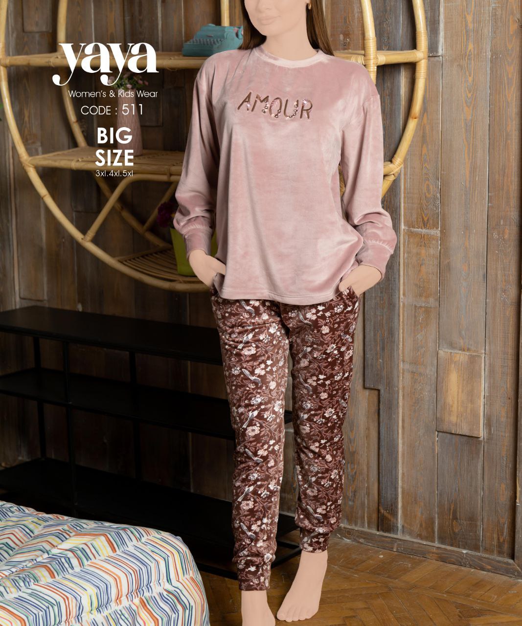 - بيجامة شتوي قطيفة من يايا 511 Big Size