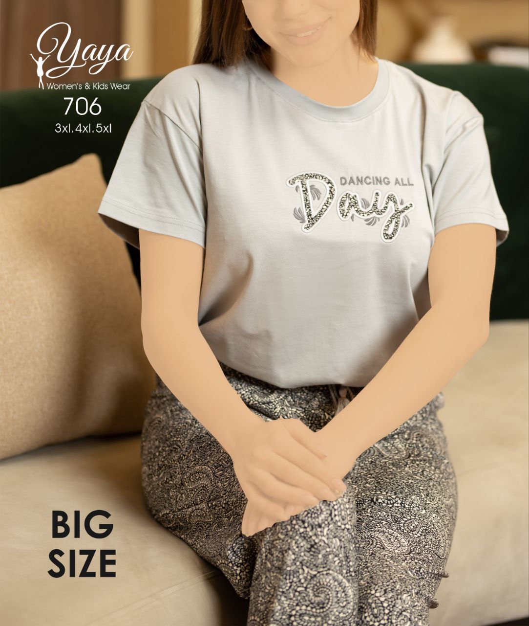 بيجامة قطن صيفي بتصميم بنطلون واسع من يايا 706 BIG SIZE | Pyjamty
