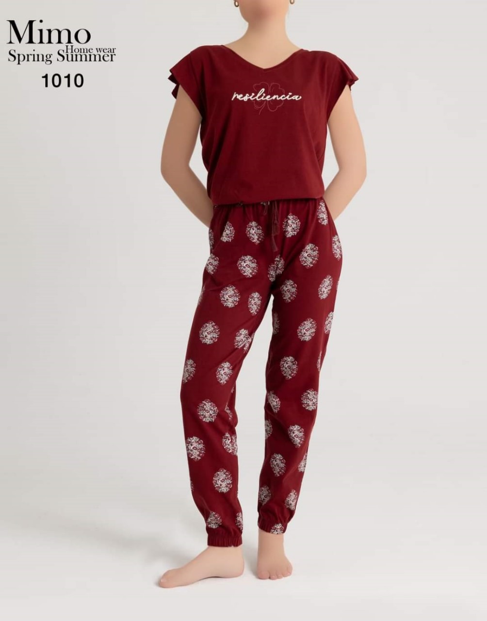 بيجامة قطن صيفي بلون نبيتي مميز من ميمو 1010 | Pyjamty