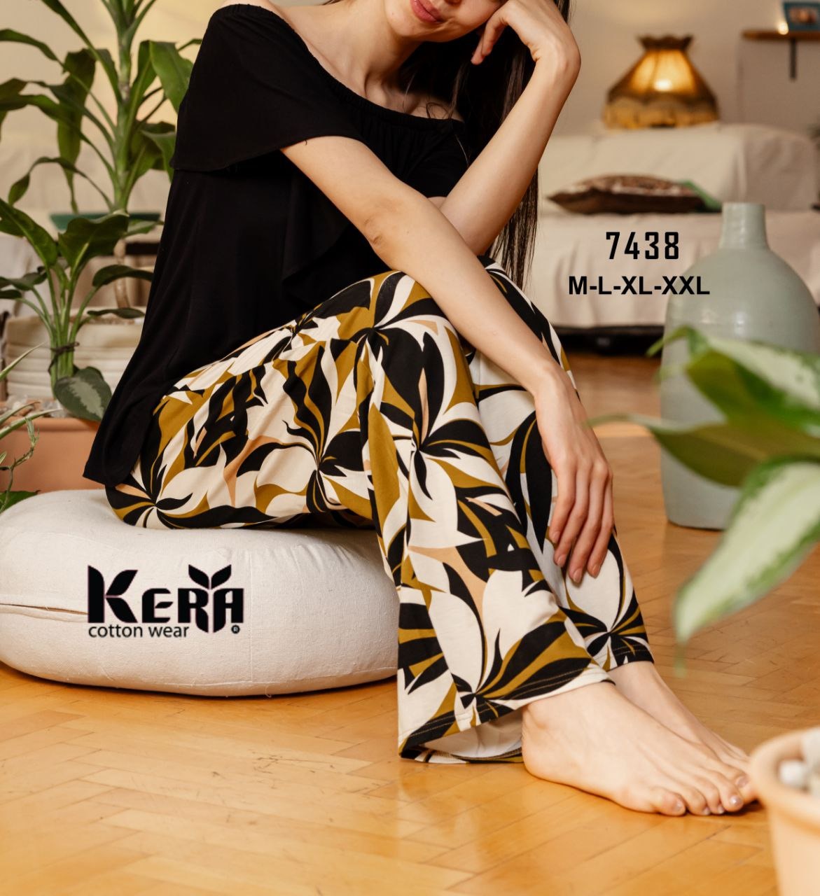 Be the first to review “بيجامة قطن Off sholders بتصميم بنطلون فضفاض من كيرا 7438 | Pyjamty”