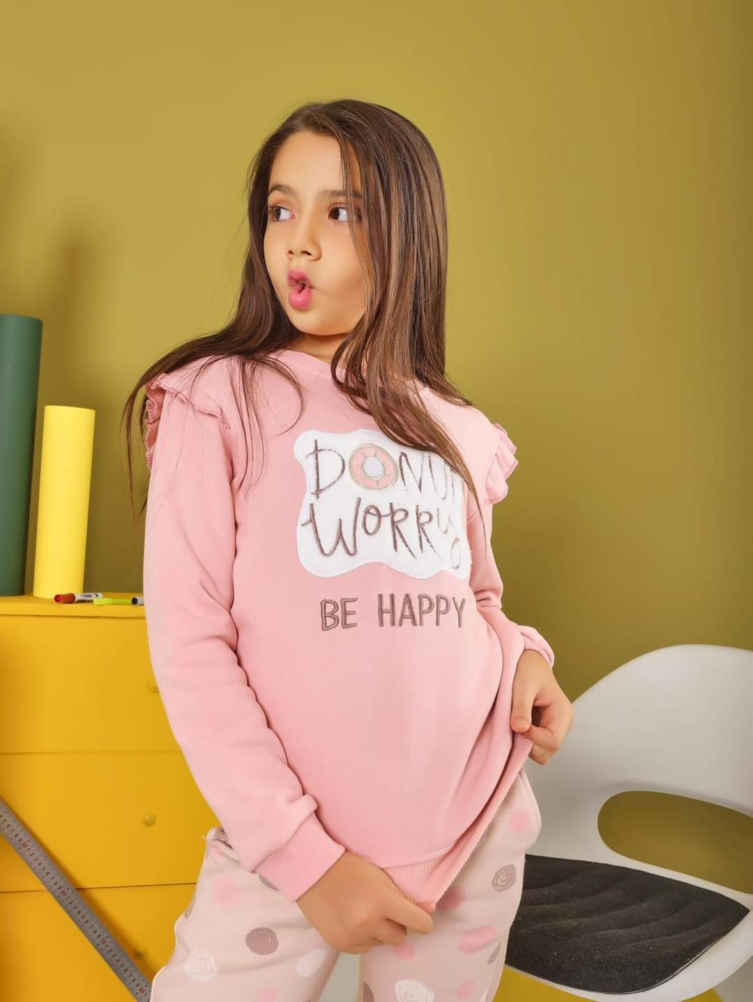 - بيجامة أطفالي شتوي بلون وردي من موانا 3445 – 4445
