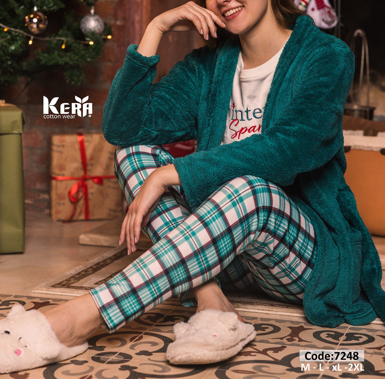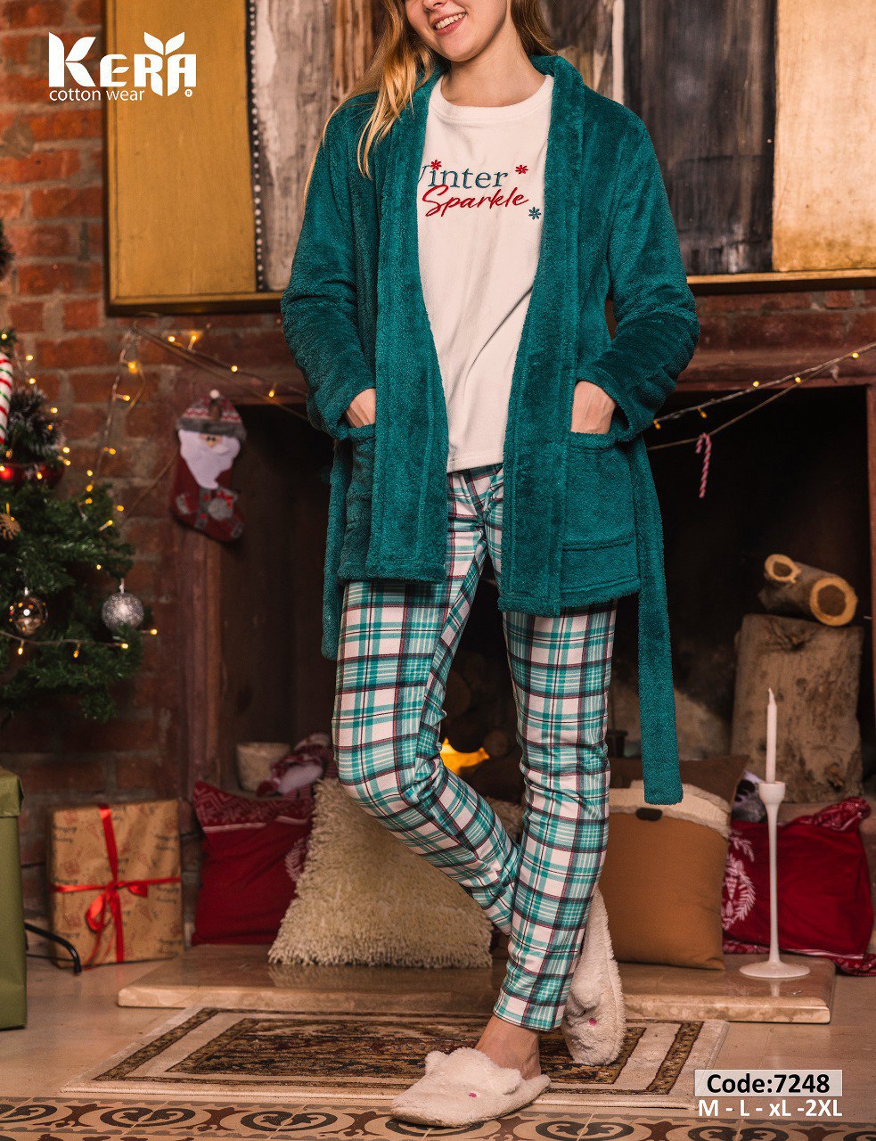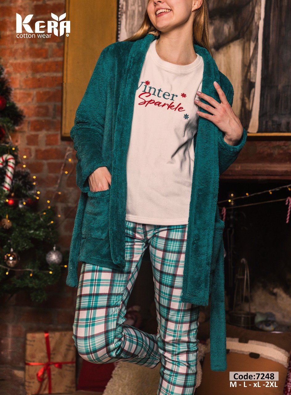 بيجامة شتوي 3 قطع بتصميم الكريسماس من كيرا 7248 | Pyjamty