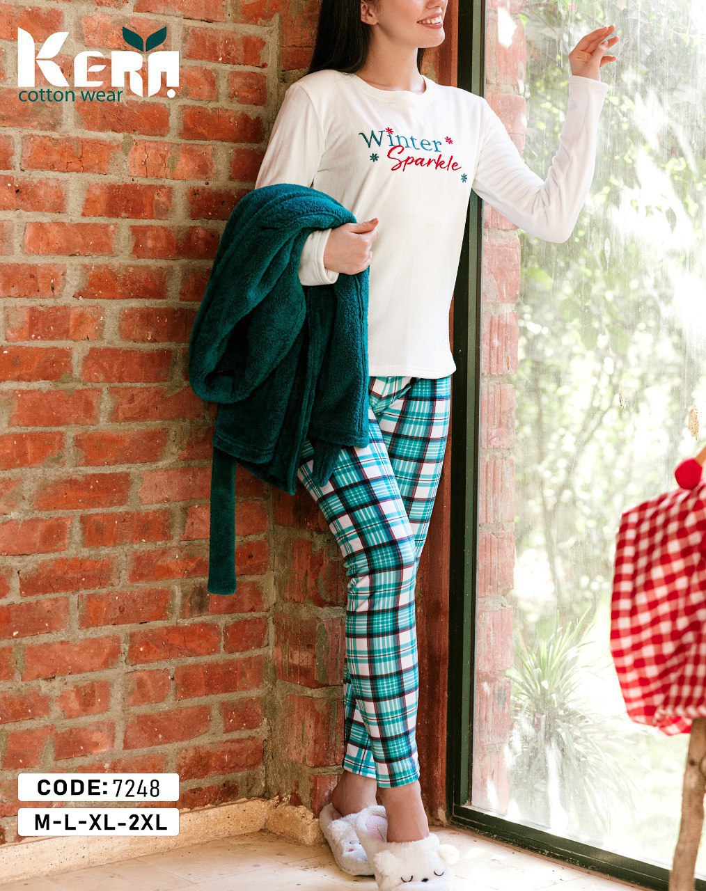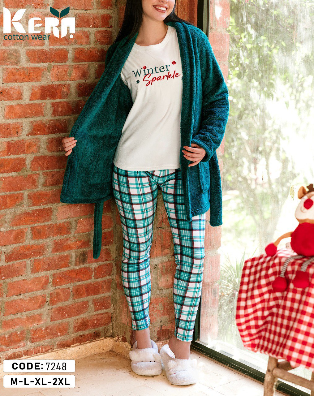 بيجامة شتوي 3 قطع بتصميم الكريسماس من كيرا 7248