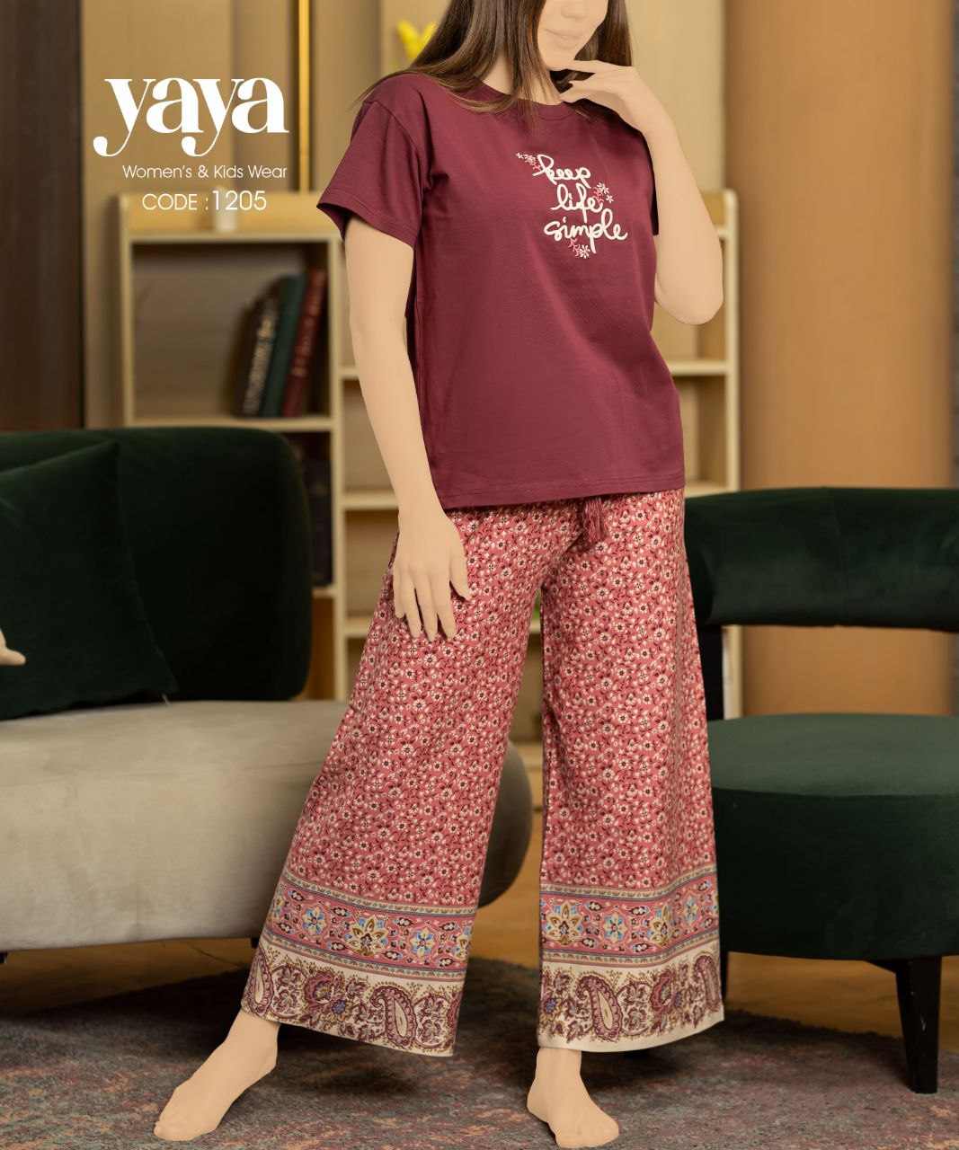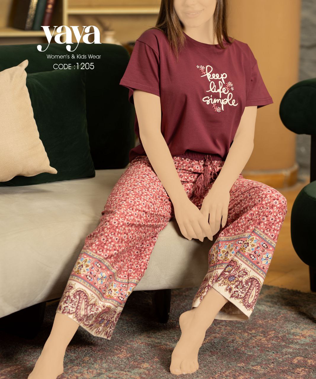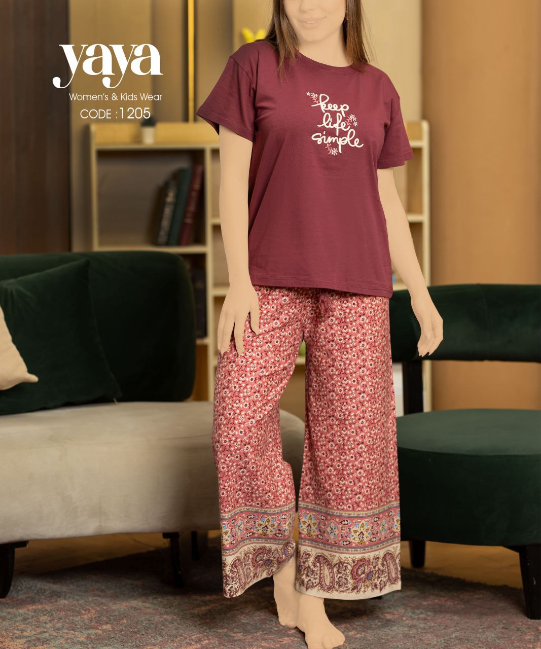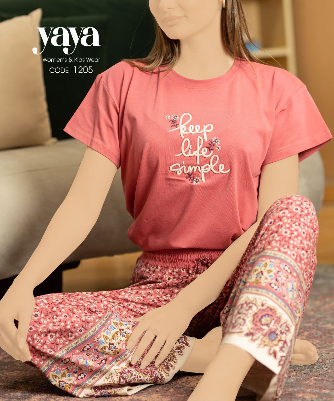 - بيجامة صيفي قطن ببنطلون منقوش واسع من يايا 1205