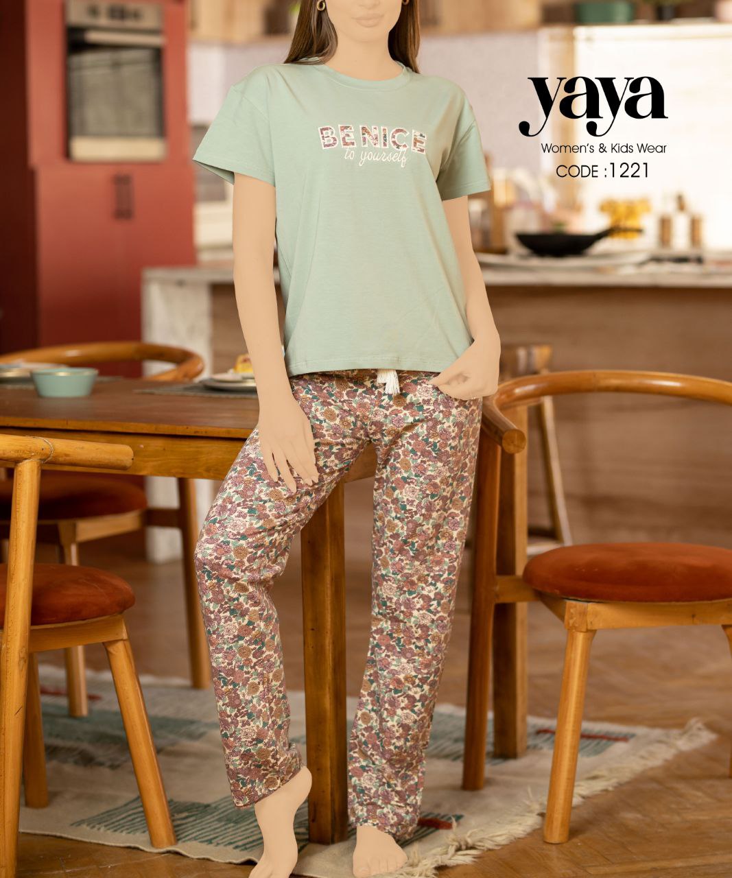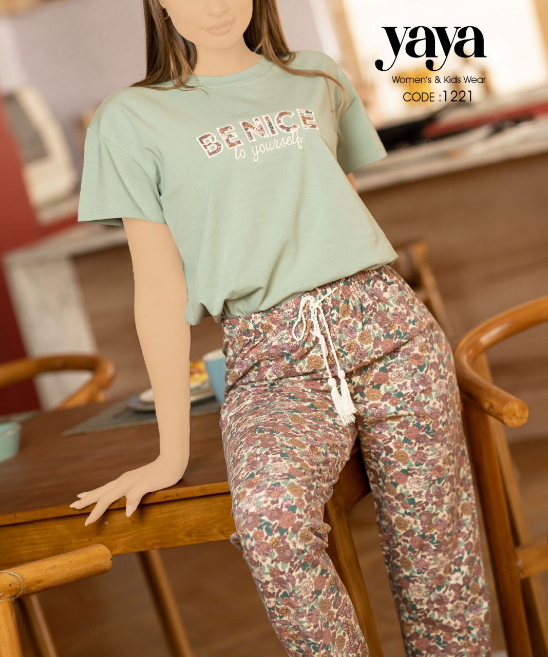 بيجامة قطن صيفي ببنطلون مشجر من يايا 1221