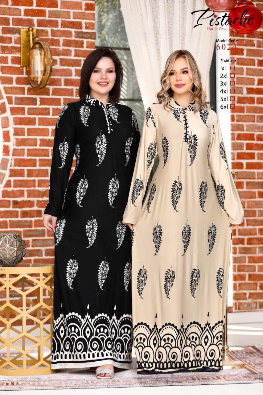 long sleeves home jalabeya with a delicate feather print from pistache 6024 | Pyjamty