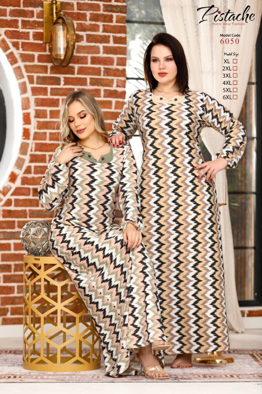 long sleeves home jalabeya with a zigzag pattern from pistache 6050 | Pyjamty