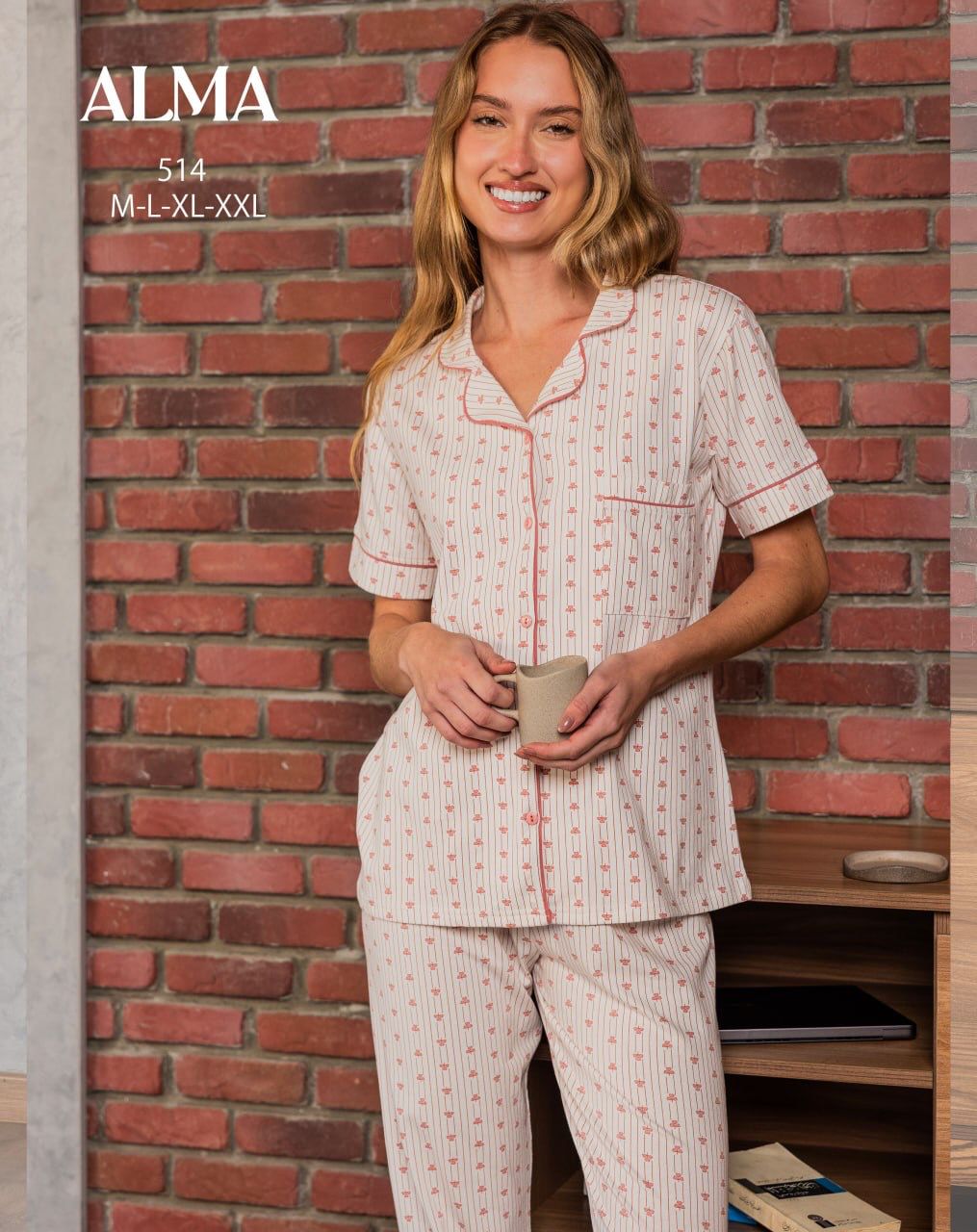 - short-sleeve pajama with button-up top, with a stripped print from ALMA 514