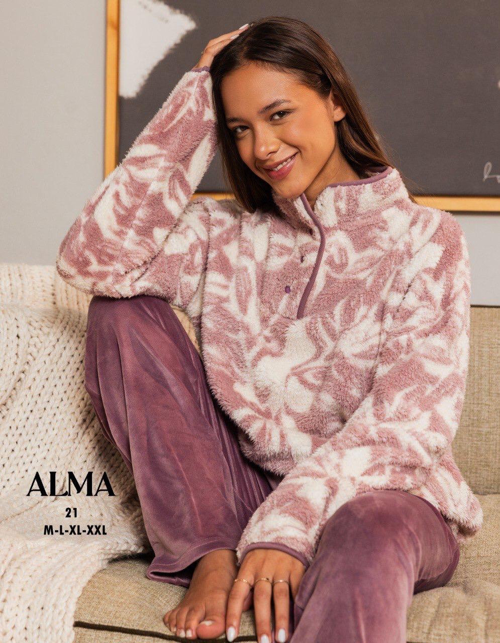 winter pajama with a floral polar fleece shirt from Alma 21 | Pyjamty
